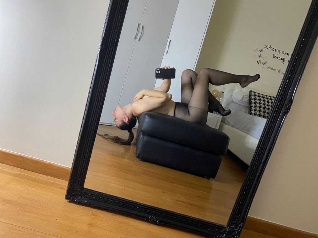 Seductive babe in pantyhose before the mirror from private collection